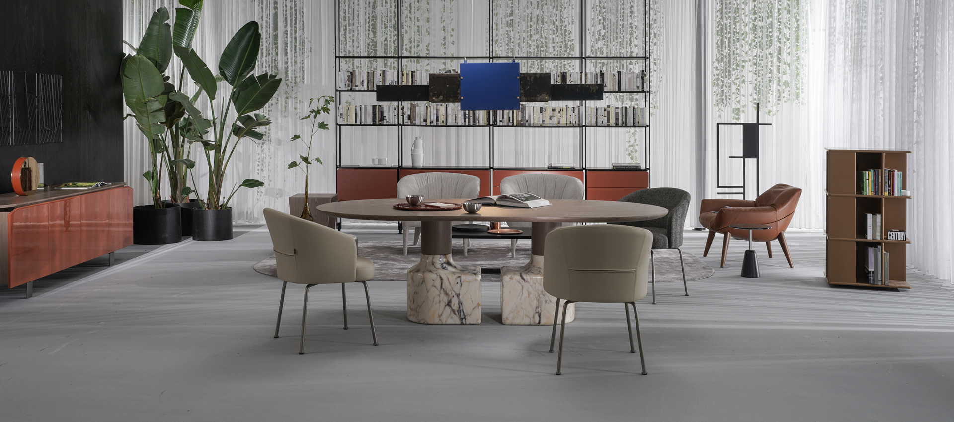 Masif ahşap kollarının çevrelediği geniş hacimli oturma alanında ve sırtında kullanılan öğelerin titiz geometrileri ile Massimo, zarif ve kendinden emin saf bir duruş sergiliyor.