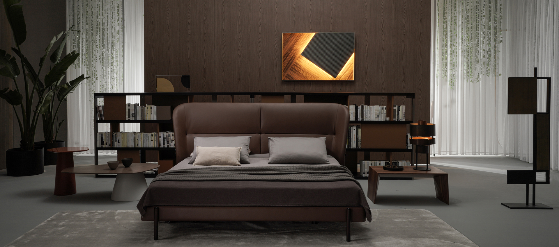 Geniş kasası ve kucak açmış gibi öne doğru uzanan yatak başlığı ile Ampollino, dingin ve sarmalayıcı bir duyguya davet ediyor.