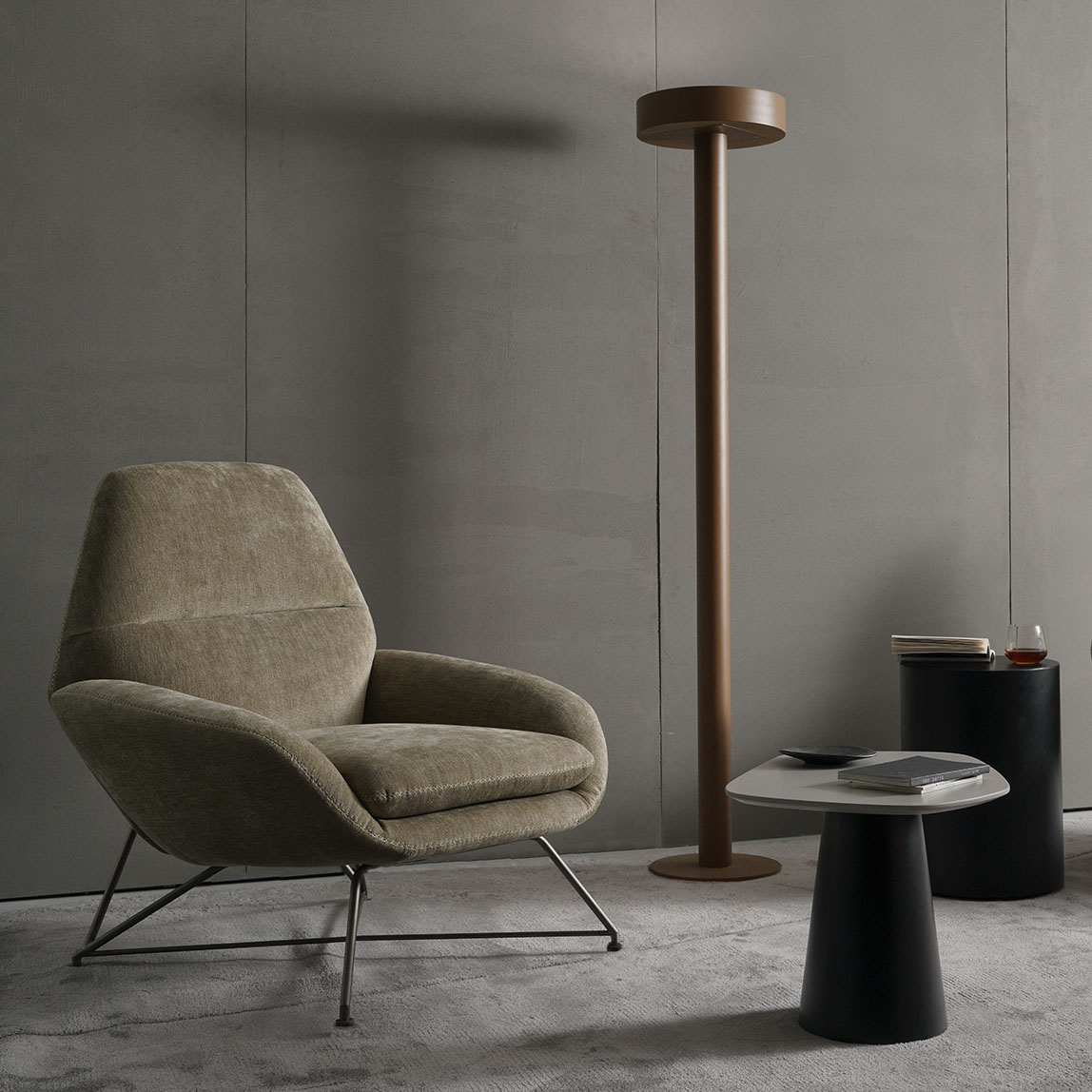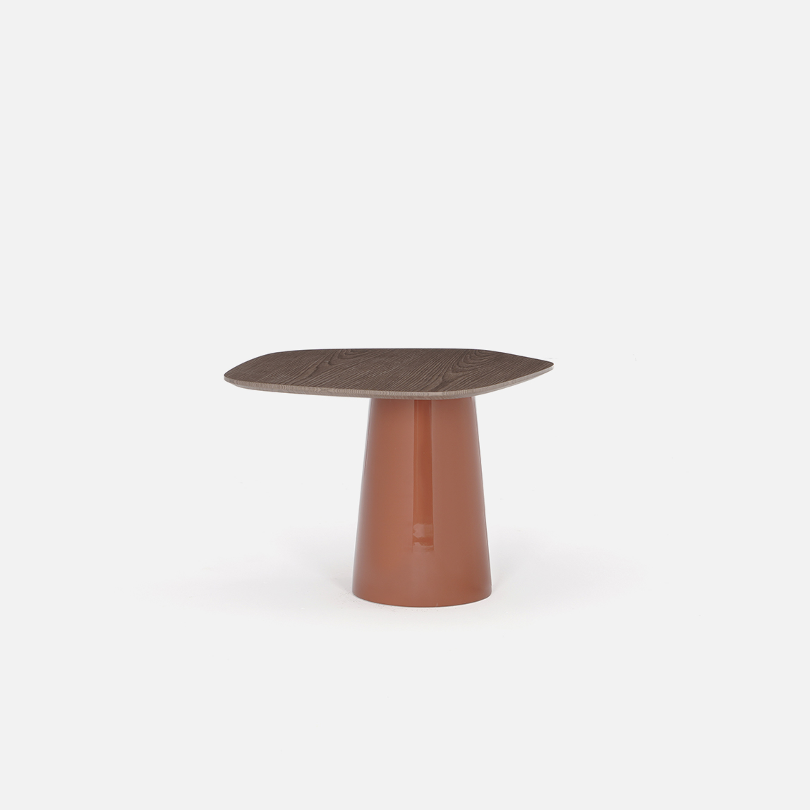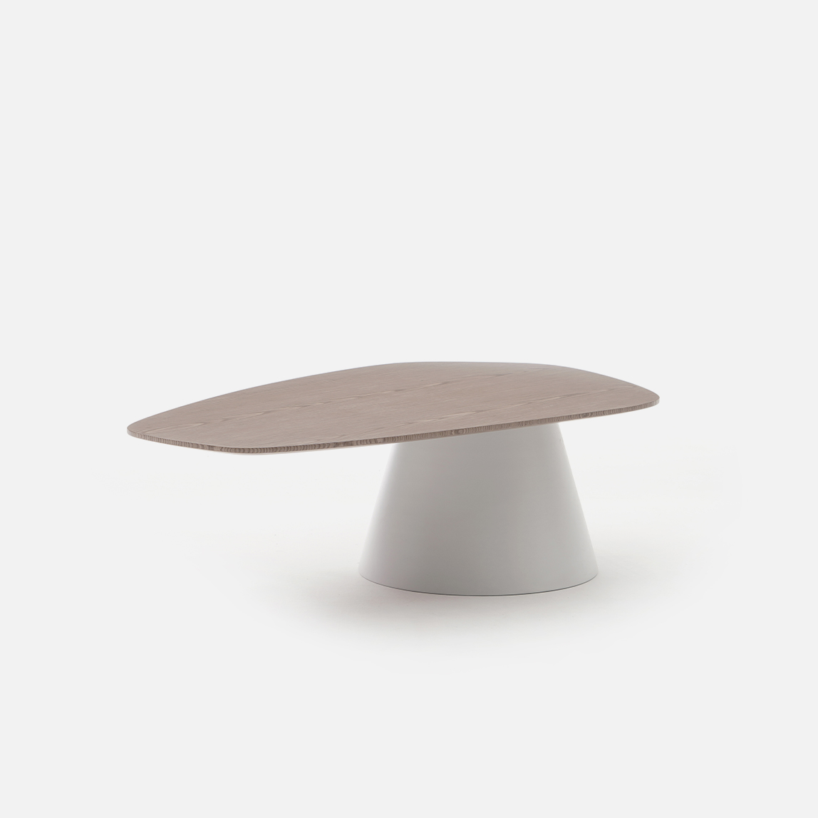 The material and chromatic interplay of the geometric elements increases the subtle yet theatrical impact of these multi-use tables, appropriate for both the day and night areas of the home