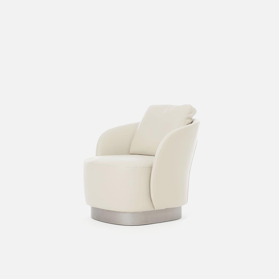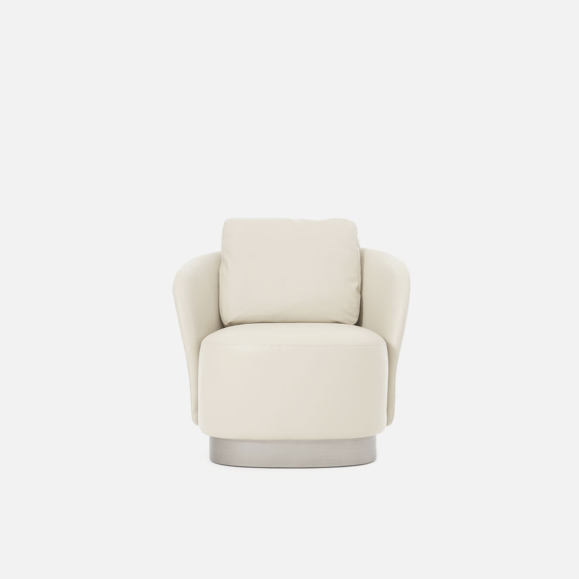 Peaceful design of Bonamico; The large seating area, surrounded by the elegant arm and back part in great harmony, integrates with the soft and comfortable back cushion and stylish metal legs.