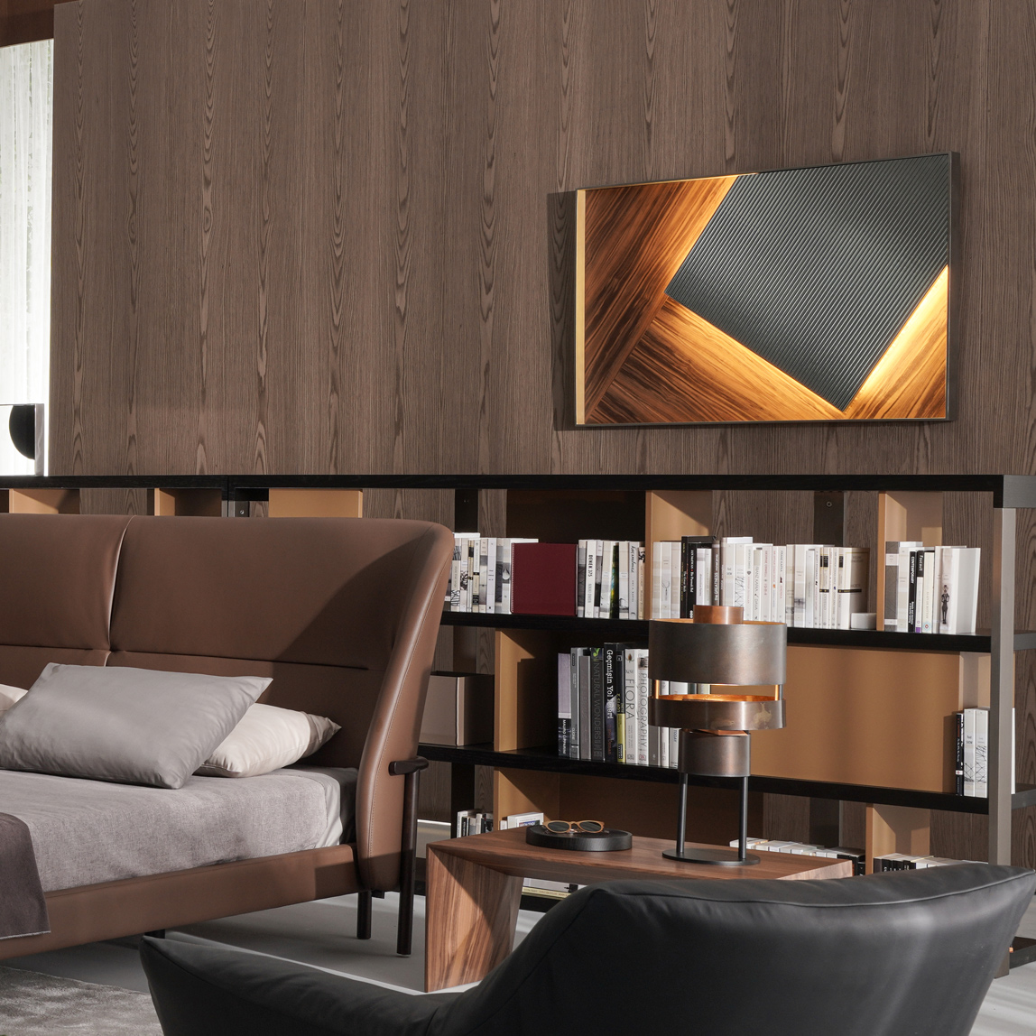 Lascari, who pays homage to the Bauhaus school, goes beyond the mirror designs you know with the combination of parallel planes and lines.