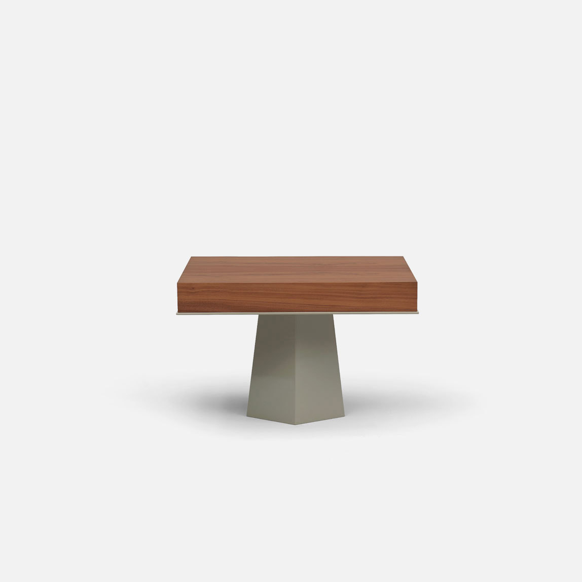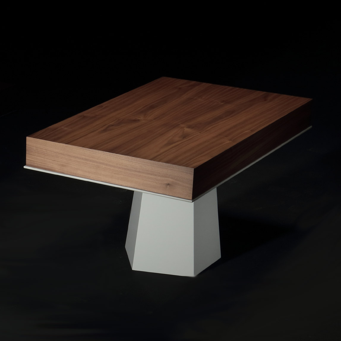 The wooden table of Levanzo in cubic form and the foot that carries it represent the simple and eye-catching meeting of prisms.