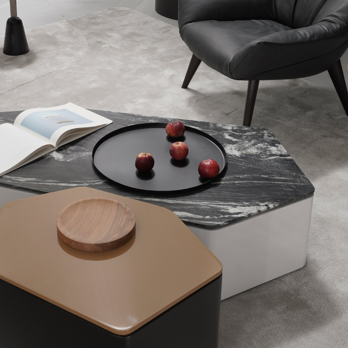 Terrabianca, which offers many alternatives for body and top plate composition; With its different geometric forms, it can easily adapt to any environment it is in. This stylish coffee table, which catches the eye at first glance with its strong and clear structure, arouses admiration with its versatile use.
