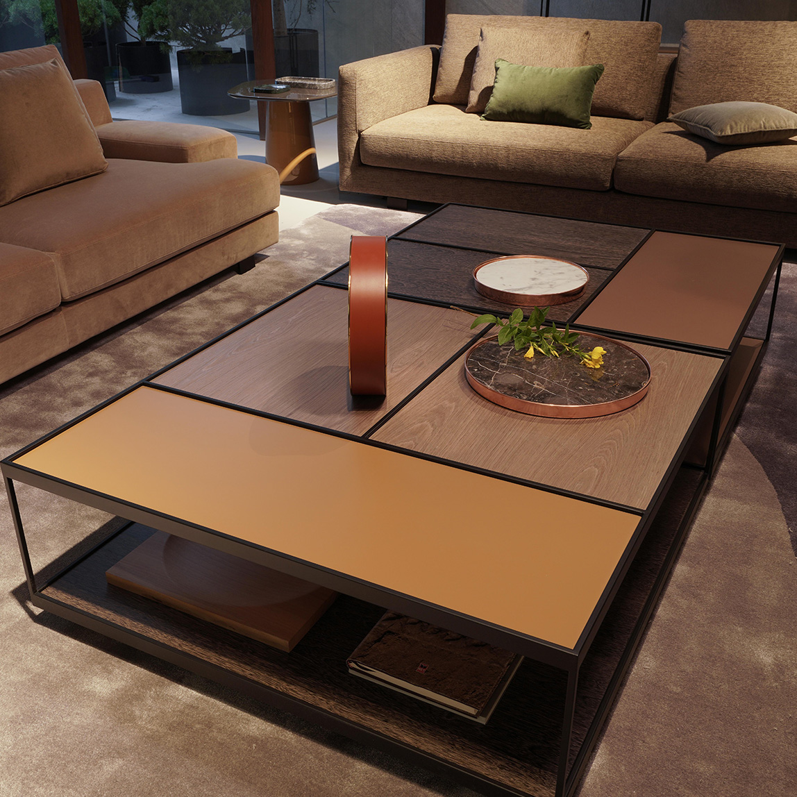 Different materials come together in perfect harmony, wooden and marble tops are combined with metal supports, making its mark on a timeless and spaceless design, Terrata.