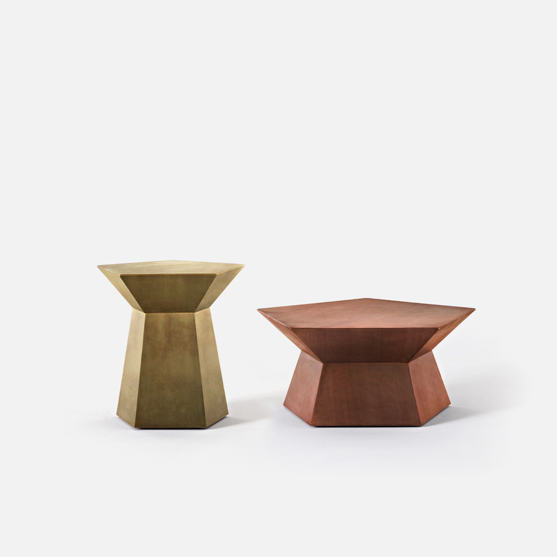 Vulcano, which is formed by combining metal sheets using excellent welding techniques; It showcases Casa's extraordinary and meticulous metalwork. A visual feast emerges with the use of copper, bronze, titanium and anthracite color options for metal surfaces together in coffee table forms of various sizes.