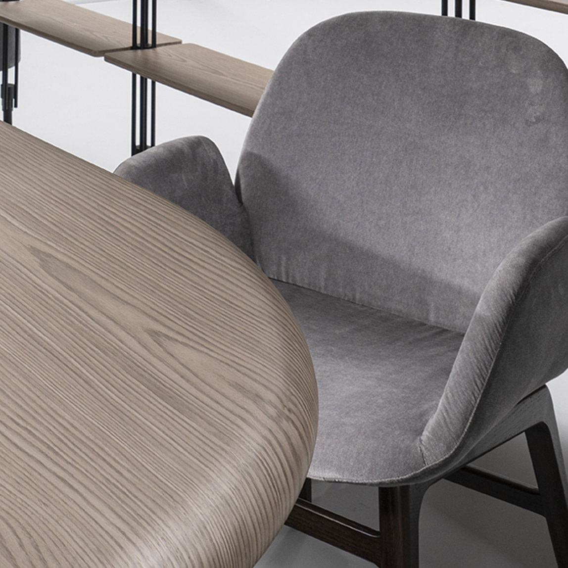 Doğal deri ve geniş kumaş yelpazesi, tamamen gözler önünde olan masif ahşap iskeleti ile bütünleşik fiberglass yapısının birleşimi Sottera’nın konfor ve güven duygusunu vurguluyor.